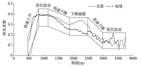 图3 秦岭南北坡NDVI 与SPEI 相关系数随海拔变化情况