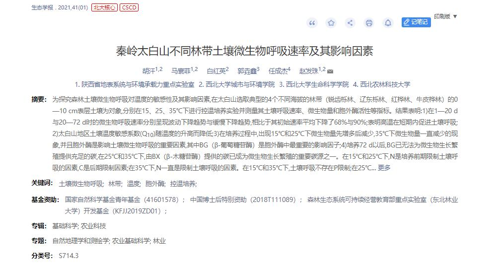 【论文题目】秦岭太白山不同林带土壤微生物呼吸速率及其影响因素