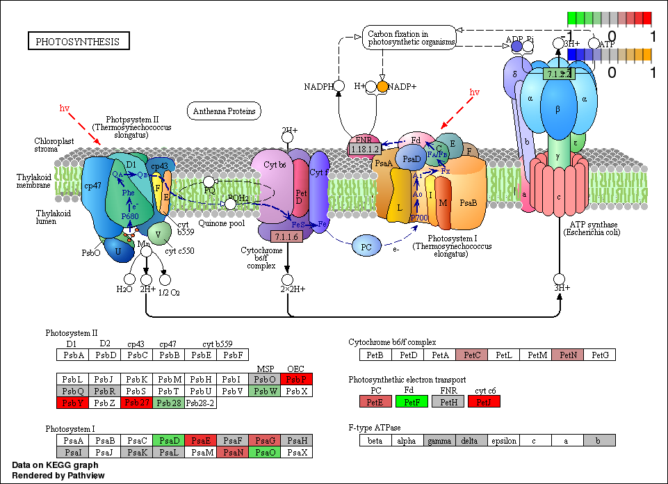 图12 转录与代谢组联合解析克拉霉素对绿藻光合作用的影响机制