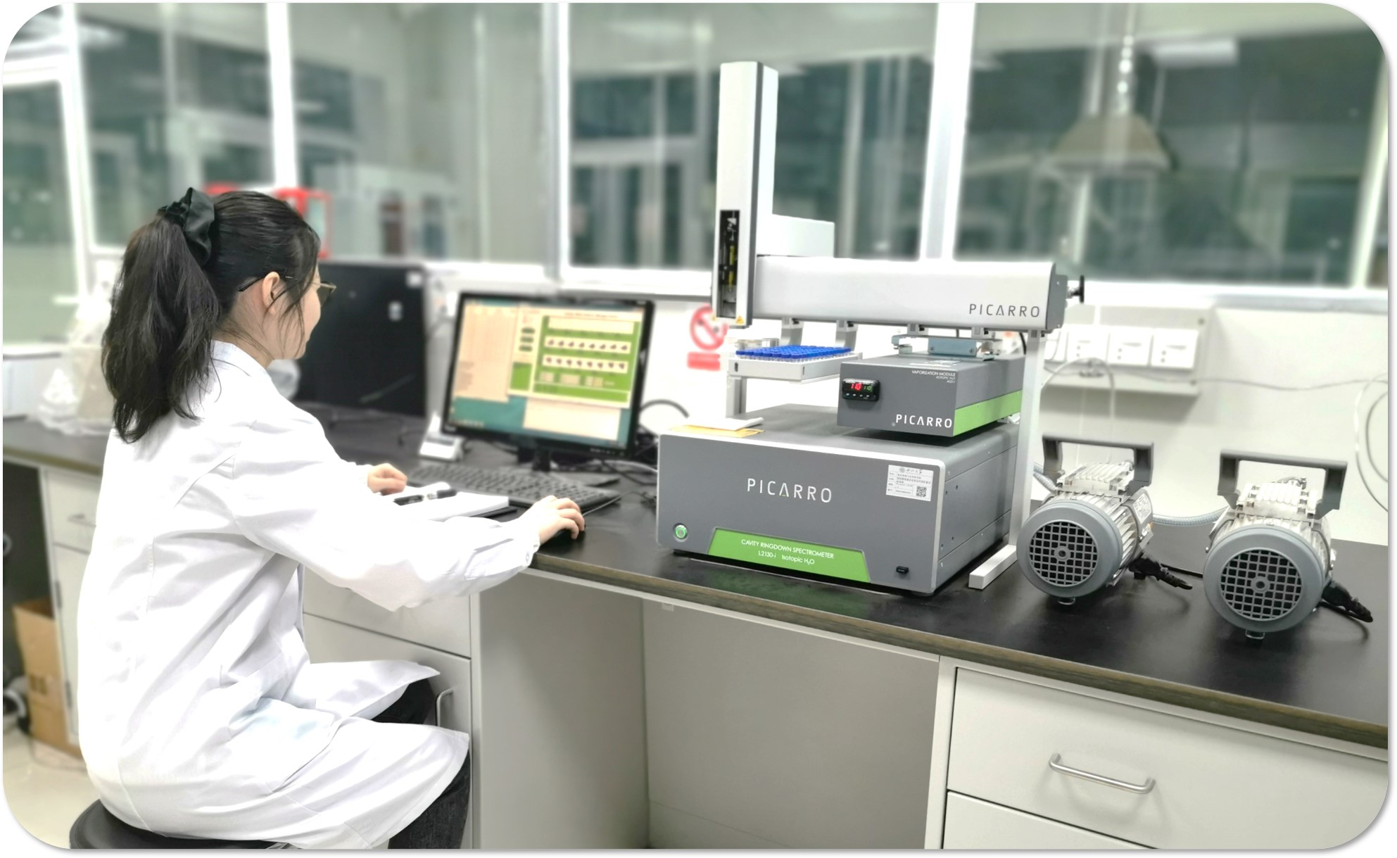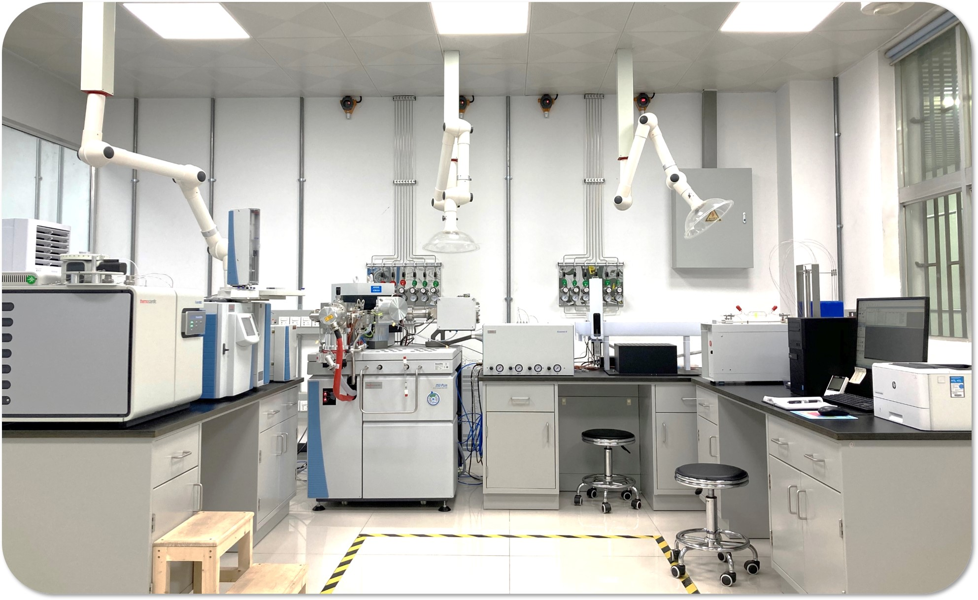 实验室用房面积3000m2,其中仪器分析用房面积2500m2,办公用房面积400m2,资料室面积100m2。实验室现拥有气体稳定同位素比质谱仪、超高精度液态水和水汽同位素分析仪、离子色谱仪、超高效液相色谱与三重四级杆质谱联用仪、气相色谱与三重四级杆质谱联用仪、电感耦合等离子体质谱仪、TOC分析仪、多功能酶标仪、热释光/光释光测年仪、能量色散X射线荧光光谱仪、激光粒度仪、磁化率仪、扫描电镜、X-射线衍射仪、无人机载高光谱成像系统、探地雷达、便携式土壤碳通量自动测量系统、全自动太阳光度计、全自动网络化植被冠层分析仪、高密度电法仪、陆基三维激光扫描仪、高速自动比表面与孔隙度分析仪、便携式光合作用测量系统、超高精度液态水和水汽同位素分析仪、高精度测量机器人TS60、测量型GNSS等大型仪器设备及辅助设备30余台套,仪器原值1500余万元。
