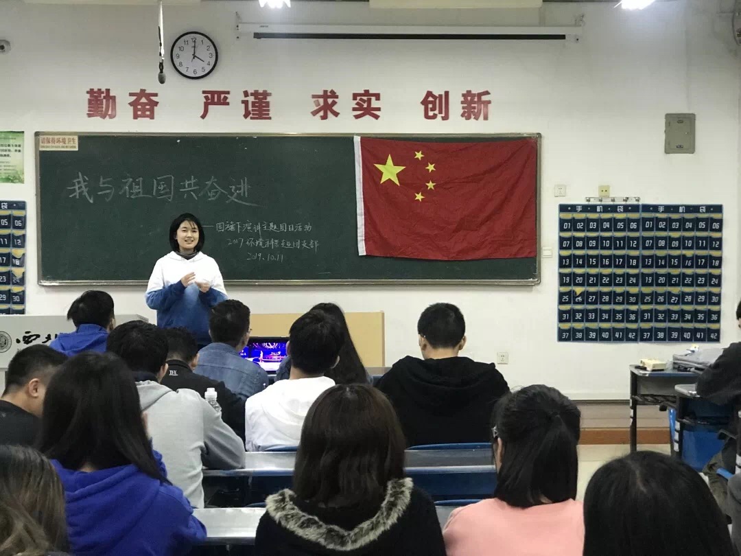 2019年10月11日下午四时于1110教室,2017级环境科学专业团支部在团支书的主持下开展了“我与祖国共奋进——国旗下演讲” 特别主题团日活动。