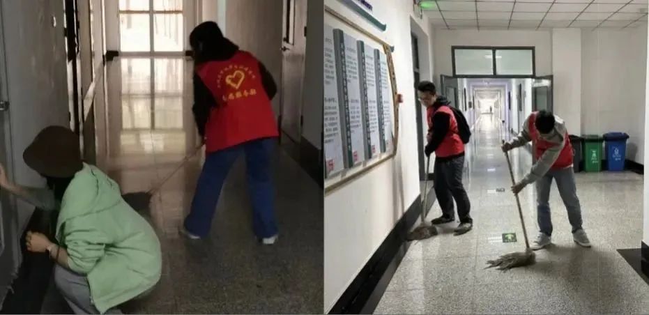 活动中,志愿者有序摆放了院楼外的共享单车,清理了附近草坪的垃圾,重点对院楼办公区域和公共场所的楼梯扶手、楼道走廊、办公桌椅沙发认真进行了打扫,给楼内绿植浇水。大家热情高涨、埋头实干,院楼的卫生环境焕然一新。