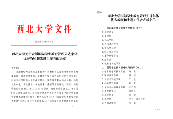 2023年1月,学院获澳门pg官方电子平台国际学生教育管理先进集体