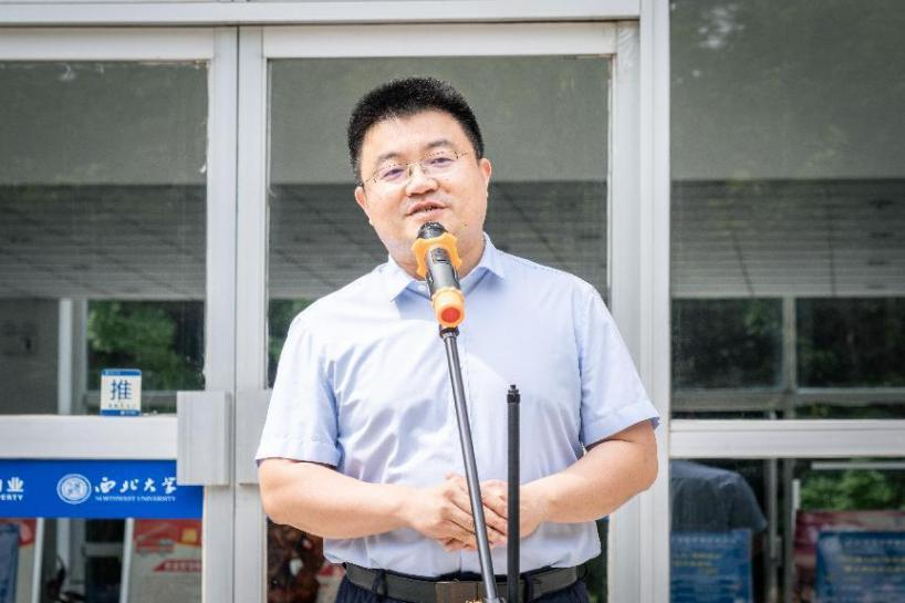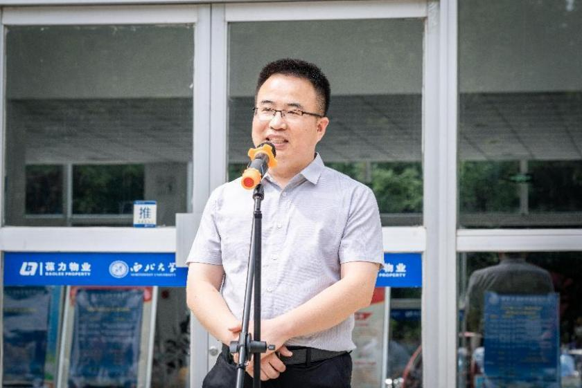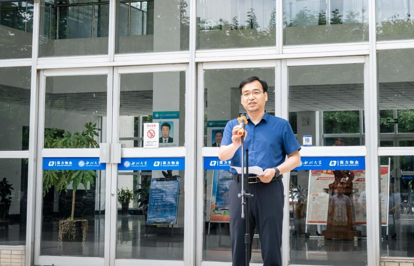 学院院长宋进喜代表学院对关心和支持学院发展的杰出校友王超、李琳夫妇表示衷心的感谢。他介绍了阳光遮雨棚及LED显示屏建造情况,他表示,校友王超、李琳在毕业后依然心系母校、关注母校、支持母校,为母校发展贡献力量,他们的行动彰显了西大情怀、传承了西大精神。
