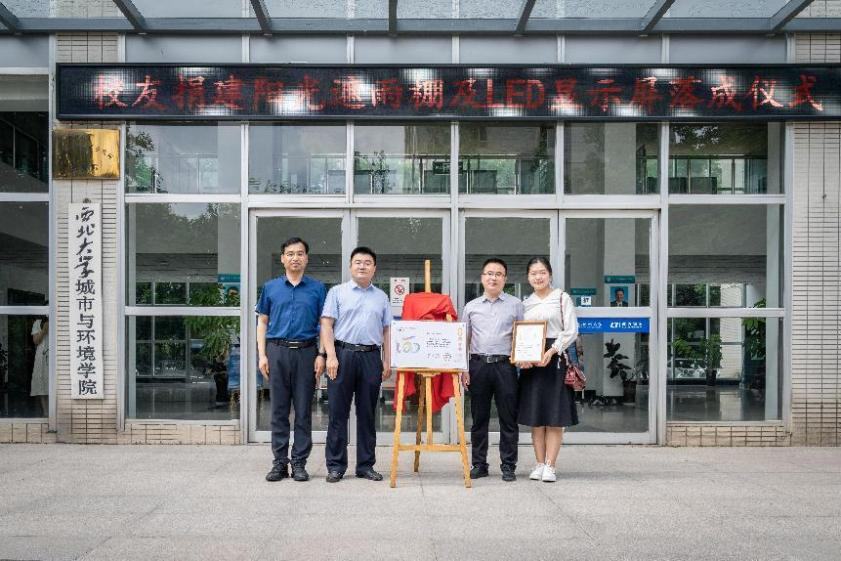2022年6月9日下午,澳门pg官方电子平台校友捐建阳光遮雨棚及LED显示屏落成仪式在学院大楼前举行,校党委常委、副校长吴振磊,学院党委书记史波,院长宋进喜,捐赠校友王超、李琳,国内合作与校友工作处副处长燕来,班子成员及学院师生代表参加此次落成仪式。落成仪式由院长宋进喜主持。