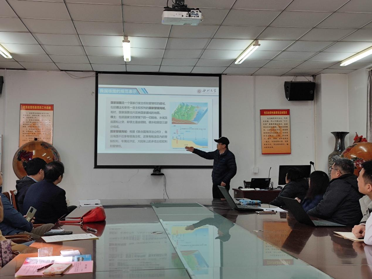 2021年11月10日下午,澳门pg遥感与地理信息科学系党支部在学院215会议室开展了面向全系教师的“支部书记讲党课”活动,由系党支部书记王雷老师为全系教师讲了一堂以“国家版图知识”为主题的微党课。