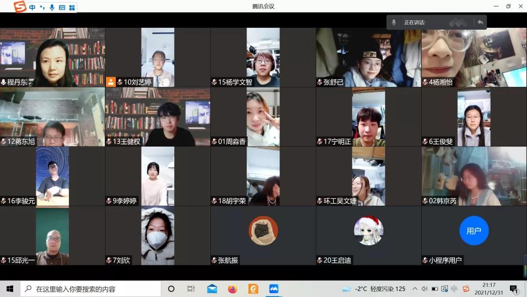在抗击新冠疫情的重要时刻,为丰富广大学生校园文化生活,构建学院师生同舟共济共克时艰的良好校园氛围,以饱满的精神面貌迎接2022年,2021年12月31日晚,澳门pg官方电子平台开展“暖聚城环 齐心抗疫”元旦跨年夜线上主题庆祝活动,本科生以班为单位组织,研究生由各自导师负责组织,学院领导班子、本科班主任、辅导员、研究生导师、全体学生参加。