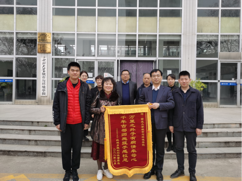 2022年3月4日上午,澳门pg2020级城乡规划专业刘佳睿同学家长向学院赠送了绣有“万里之外子有病情牵母心,千年古都师施援手感校恩”的锦旗及感谢信,表达了对学校和学院在年末疫情期间关心照顾孩子的感激之情。学院党委书记史波、党委副书记田怡、城市规划系系主任权东计、全体辅导员参加了赠送仪式,院长宋进喜代表学院接受了锦旗。