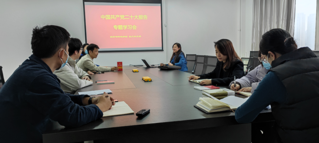 宣传委员姚秀南领学习近平总书记在中国共产党第二十次全国代表大会的报告。组织委员张波代表全体实验中心人员将党的二十大精神和实验室建设与发展工作结合,分享交流心得,全体与会党员围绕学习贯彻党的二十大精神,结合业务工作和职业发展纷纷畅谈学习体会。