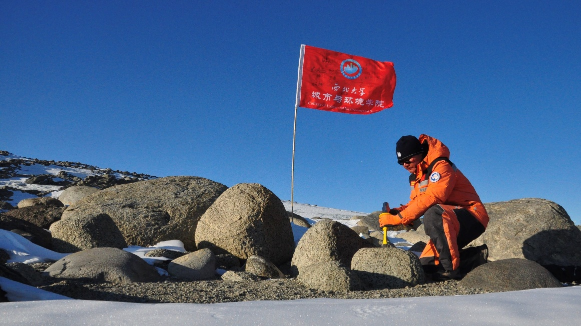作为中国第39次南极科考队员,张玉柱副教授主要对南极难言岛上赋存的冰碛物和上升海滩沉积物进行了样品采集,以开展难言岛末次冰消期以来冰川消退历史和相对海平面变化等方面的研究。报告开始前,他向学院送上了一份特殊的礼物,一面曾在南极中山站和罗斯海新站飘扬、并由罗斯海新站科考队员集体签名的澳门pg官方电子平台院旗。