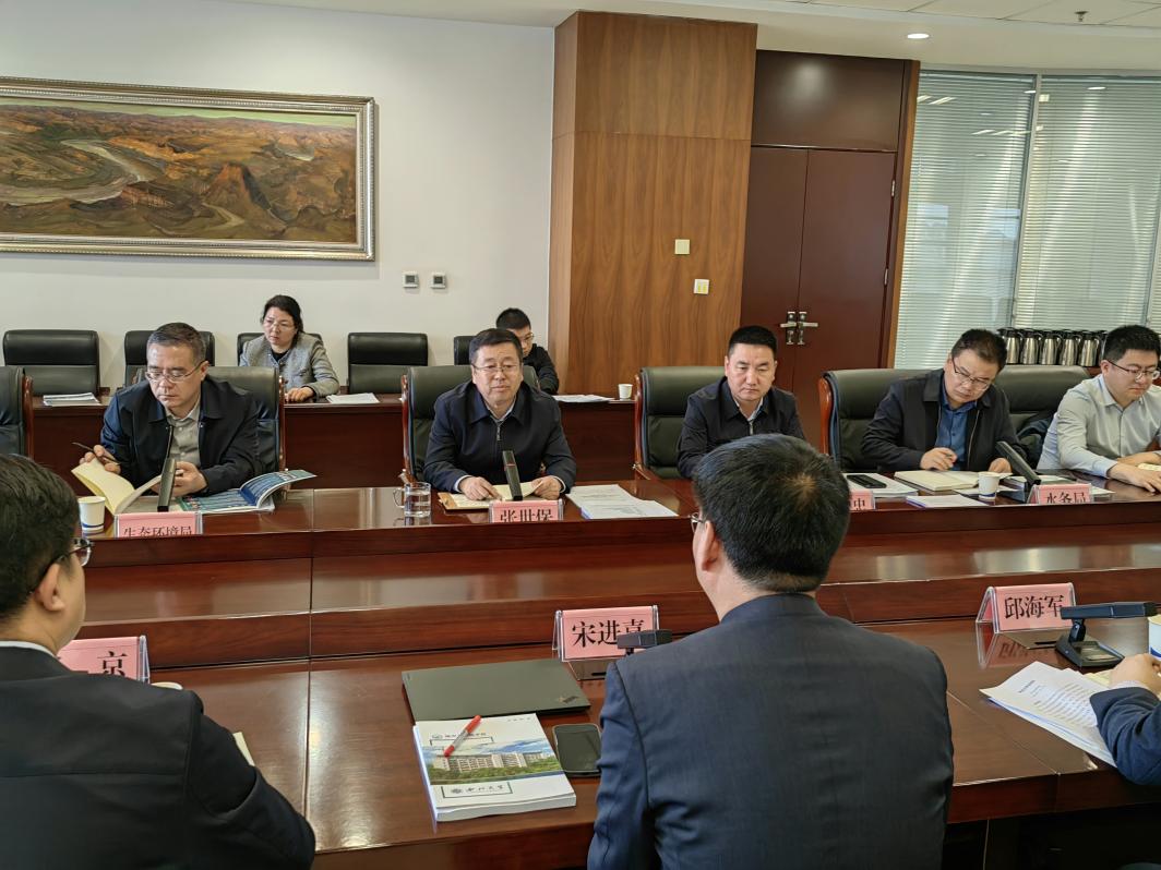 调研组一行与延安市副市长张世保、市政府副秘书长耿文忠及市生态环境局、水务局、林业局等单位负责人以及延安水务环保集团有限公司、陕西鸿昊环保有限公司等企业负责人进行了座谈,双方就如何瞄准黄河流域生态保护与高质量发展、乡村振兴、双碳目标等重大国家战略开展多领域、深层次的校地校企合作进行探讨。