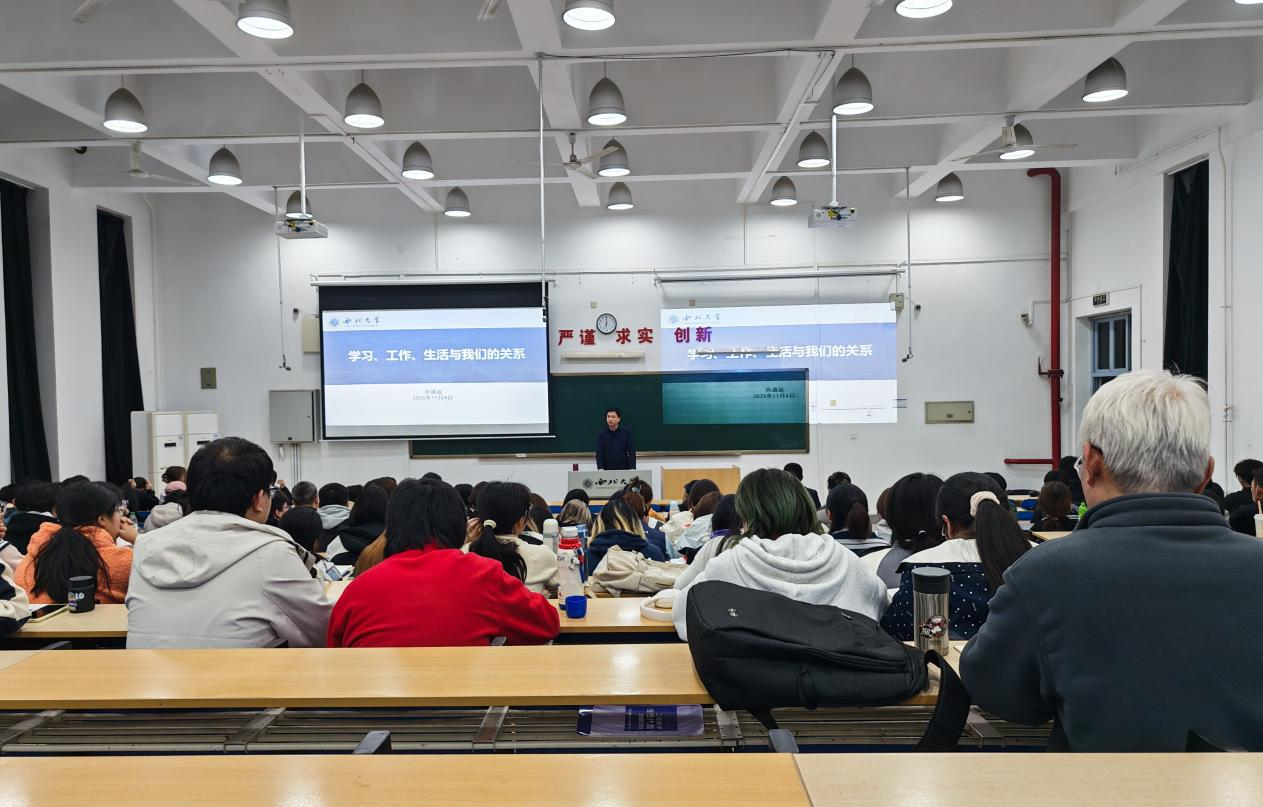 他引用马克思、毛泽东、习近平等人的重要论述,鼓励学生怀爱国之心、立报国之志、增强国之能,把个人奋斗同国家前途命运紧紧联系在一起,跑好历史的接力棒,在推进中国式现代化的宽广舞台上绽放绚丽的青春光彩。