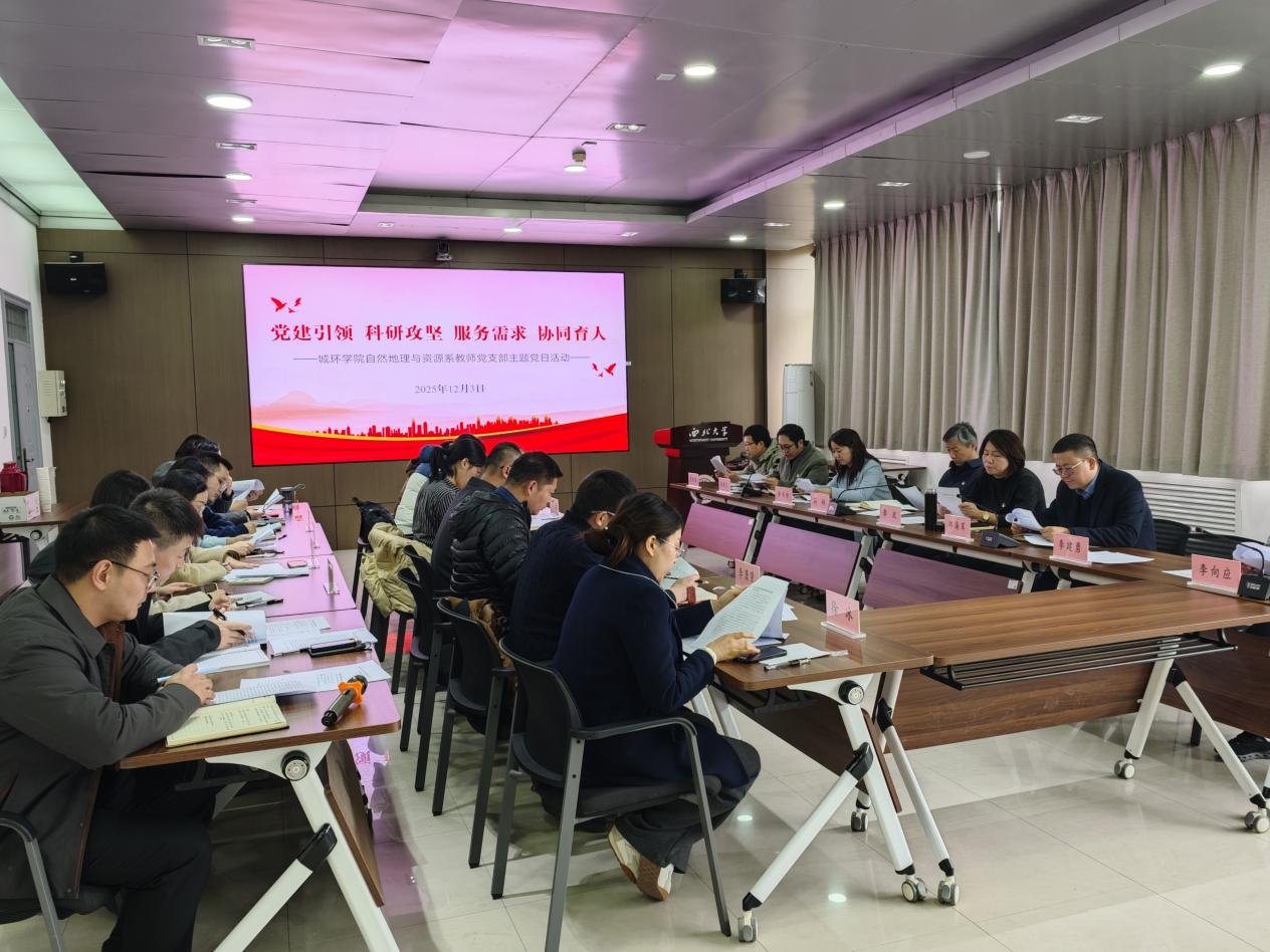 12月3日下午,澳门pg官方电子平台自然地理与资源系教师党支部举办“党建引领 科研攻坚 服务需求 协同育人”主题党日活动。校党委书记蒋林列席指导并讲话,学院党委书记李波列席会议。活动由党支部书记徐新文主持。