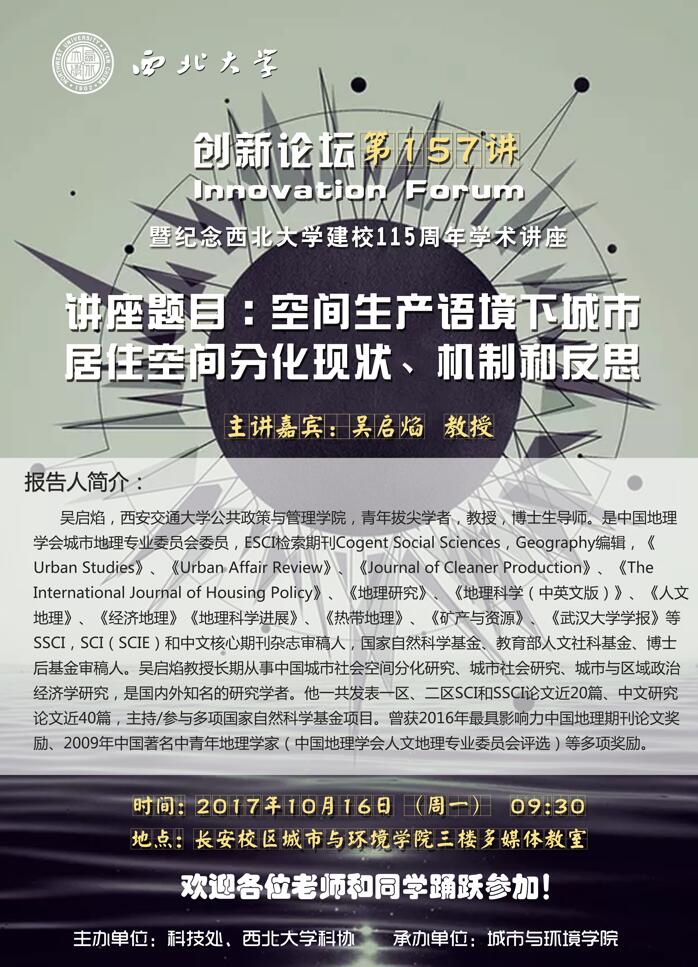讲座题目:空间生产语境下城市居住空间分化现状、机制和反思