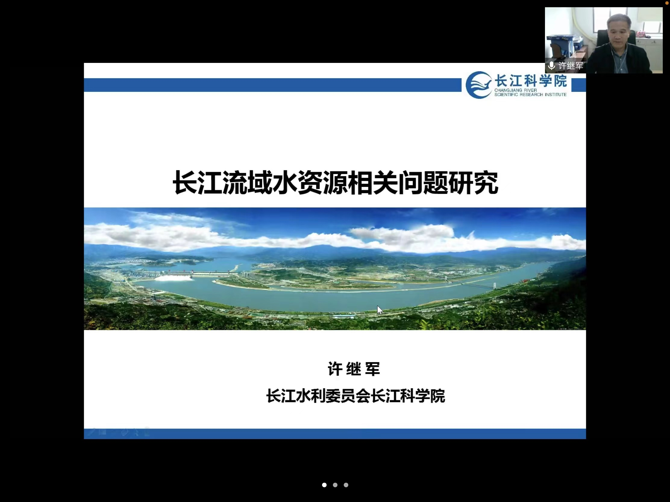 2021年11月29日下午,由澳门pg科技处、科协主办,澳门pg官方电子平台、陕西省地表系统与环境承载力重点实验室承办的“澳门pg官方电子平台创新论坛”第一千零一百七十五讲暨“澳门pg官方电子平台120周年校庆年”系列活动在在腾讯会议线上举行。长江水利委员会长江科学院教授级工程师许继军应邀为相关研究人员作了题为“长江流域水资源相关问题研究”的报告。学校相关研究人员和学生积极参加了本次报告会,报告由李向应教授主持。
